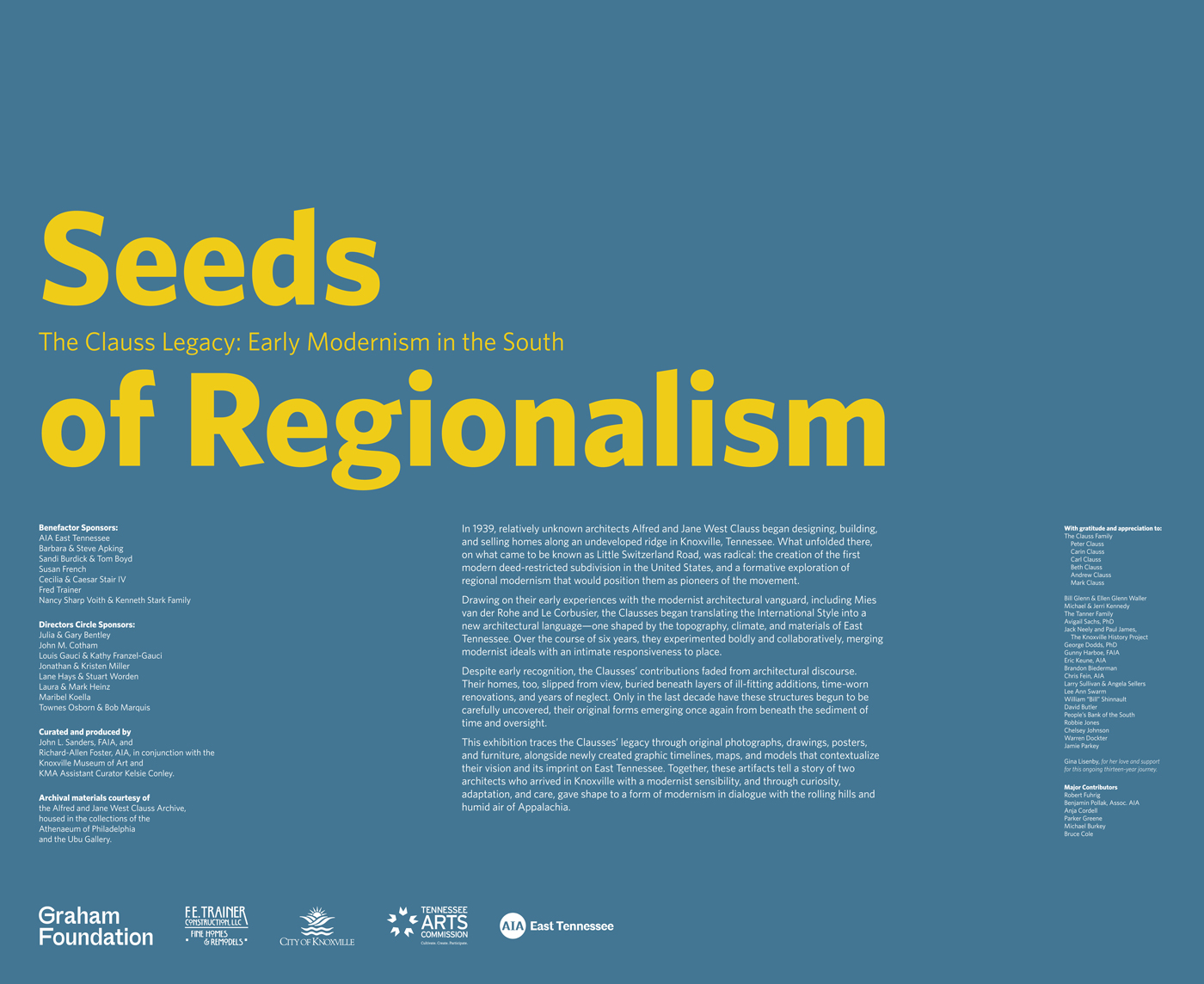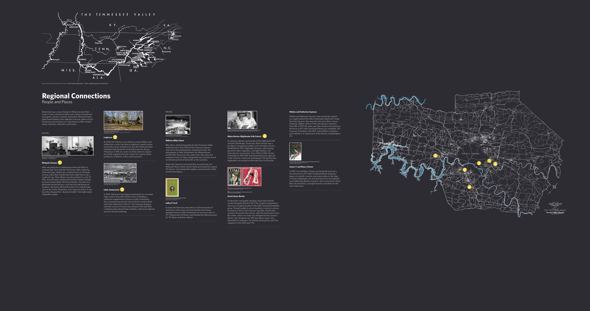 This exhibition traces the Clausses’ legacy through original photographs, drawings, posters, and furniture, alongside newly created graphic timelines, maps, and models that contextualize their vision and its imprint on East Tennessee. Together, these artifacts tell a story of two architects who arrived in Knoxville with a modernist sensibility, and through curiosity, adaptation, and care, gave shape to a form of modernism in dialogue with the rolling hills and the humid air of Appalachia.